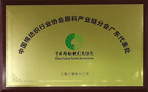 - 佛山市偉順實業(yè)有限公司被中國棉紡織行業(yè)協(xié)會原料產(chǎn)業(yè)鏈分會授予廣東代表處的企業(yè)榮譽。