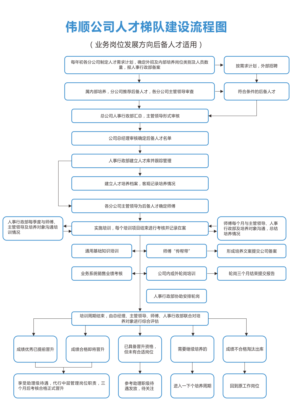 1、選有所用的原則。進(jìn)入人才梯隊(duì)的人員,確定好是向業(yè)務(wù)崗位還是向管理崗位方向發(fā)展。 2、持續(xù)性原則。后備人才培養(yǎng)工作每年至少開展一次,確保公司發(fā)展有源源不斷的人才隊(duì)伍供給。 3、共同培養(yǎng)的原則。由總公司統(tǒng)籌,各分公司(部門)作為培養(yǎng)基地,共同搞好人才梯隊(duì)培養(yǎng)工作。 4、人才共享,推薦部門優(yōu)先選用。推薦部門沒有任用的,公司可另行安排。返回